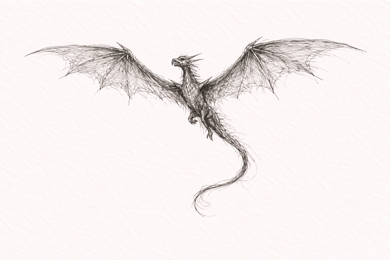 They moved through slag before the sun had thought to lift its head and the snow beneath them carried soot like memory carries blame. Hadrun went last with his ruined foot scoring the white as if some future dwarf might follow that crooked line back to a moment before the killing started. The mountains rose black as apostasy. No bird flew there. The wind made a sound like ore carts emptied of their purpose. He had seen forty-three dragons die. Each one he held in the stone vault behind his eyes where a man keeps things he cannot afford to speak. The first had burned so bright the cavern wept with light and the smell of its dying had been sweet almost like bread or like spring though he knew nothing of spring having been born in the deep places where seasons were a rumor. The last few had gone quietly with smoke instead of flame and their eyes at the end held something close to recognition which was worse than rage worse than the thrashing worse than the sound wings make when they understand the air will not hold them anymore. Brin walked ahead with his hammer slung across his back and the eagerness coming off him like heat from a forge. He had never seen the sky go dark with wings. He had never heard the old songs sung without irony. For him the dragons were mythology made flesh and killing them was a kind of prayer he had been born to speak. The priestess walked between them with her hands touching stone wherever she could as if reading scripture written in granite. Her lips moved but no sound came or if it did the wind took it before it could become meaning. She had told Hadrun once that the mountain used to sing low and constant like a mother humming to a child who could not sleep. Now there was only silence and beneath the silence something that might have been a heartbeat or might have been her own blood lying to her about comfort. They passed through a city the old dwarves had carved when the world still made sense. Statues lined the avenue with their heads broken off at the neck by hands that needed something to destroy when faith began to feel like failure. Hadrun ran his fingers along claw marks in the wall deep gouges that ran vertical like something trying to hold on or something being dragged down into the earth's embrace. The stone there still held warmth if you knew how to feel for it a phantom heat that lived in the rock the way grief lives in a name you cannot say. In his pack he carried the notebook bound in dragonhide its pages filled with marks he could not read. A human scribe had made them generations back before humans stopped coming to the deep places before the dwarves stopped letting them. Hadrun would open it at night and press charcoal to paper making shapes that meant nothing practicing a literacy of ash and witness. He told himself he was recording the hunts but what he was really doing was trying to remember how to regret which was a skill his people had bred out of themselves the way you breed the light-hunger out of pit ponies. On the fifth day they found the temple. Most of it had been unmade with hammers and systematic rage but one wall remained where the iconoclasts had maybe grown tired or maybe seen something that made them stop. A mural mostly chiseled into abstraction. Hadrun sat before it while the others slept their breath misting in the cold that had started to feel permanent. He traced the faint lines with fingers black from years of handling char. A dragon's head bowed low. A circle of dwarves with their hands open not clenched. Fire passed between them like a gift like an agreement like a thing that could only work if both sides remembered they were necessary. The runes he could not parse but the image spoke a language older than runes. This was not subjugation. This was not war. This was something his people had worked very hard to forget the way you forget the face of someone you betrayed so thoroughly that seeing them again would mean admitting what you are. The priestess woke and found him there. She looked at the wall and her face did something complicated. When she spoke her voice came from a long way off. The stone is forgetting how to be warm she said. When the last fire goes we will all be weight and no heat. Just the pressing down of things with no light to see by. Brin wanted to keep moving. He had the hunger of a man who needs his myth confirmed. For him the dragon was a monster and killing it was the only story that made sense of his life. He did not want complexity. He wanted a villain clean and simple something his hammer could solve. They found the lair on the seventh day in a cavern that opened to a wound of sky. The dragon lay coiled around eggs that would not hatch. It was old beyond old scales sloughing like bad skin breath more rattle than roar. When it saw them it did not rise. It made a sound like continents grinding to a halt. The language was stone and sorrow. Hadrun understood it the way you understand a song in a tongue you never learned but your grandmother sang before you had words for loss. The dragon was saying something about pacts. About the old agreement. About fire shared not stolen. It was saying the eggs were cold because the earth itself was dying and no amount of marrow ground to powder would resurrect what they had killed when they decided their fear was more true than their memory. Brin raised his hammer. The priestess stood very still with her hand on the cavern wall feeling the mountain hold its breath. Hadrun stepped forward with his ruined leg screaming and put himself between steel and scale. He tried to say what he had learned. He tried to explain that they were killing the last thing that knew how to keep them alive. That the dragons had been tending warmth not hoarding it the way a shepherd tends a fire through a long night so that dawn would still mean something. But his words were wind against stone. Brin's faith was louder. The others moved with the momentum of a people who have been ending t